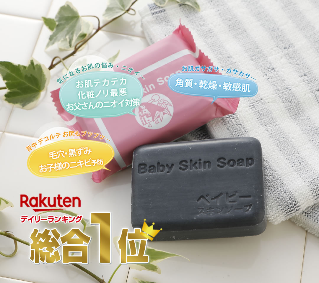 スキンケアは洗顔が大事!各モールで多くの賞を受賞!\400万個突破/の魔法の黒石鹸「ベイビースキンソープ(ベイビーちゃん)」が毛穴問題、角質除去、ニキビ予防などお肌のお悩みを解決!サッパリするけど潤う大人気の石鹸です。